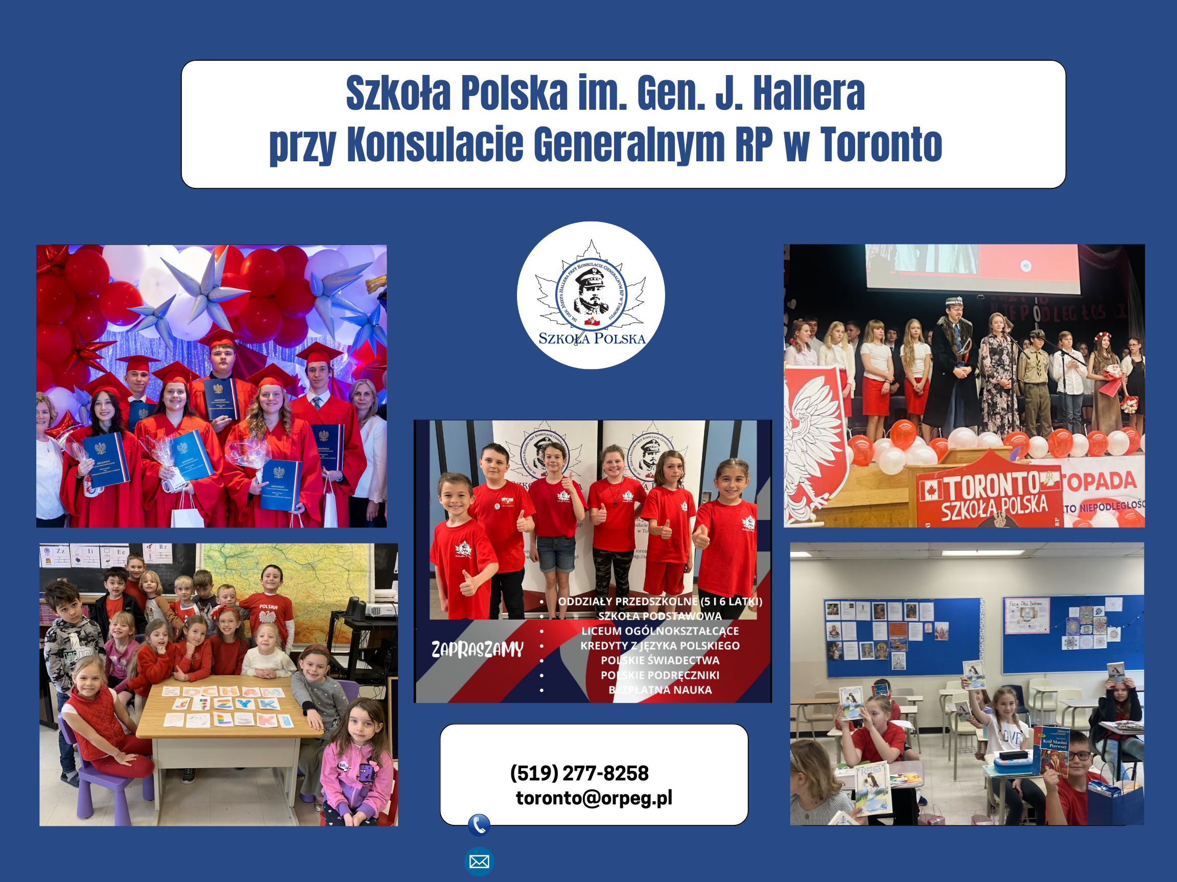 Czytaj więcejSzkoła Polska przy Konsulacie Generalnym RP w Toronto jest jednostką podlegającą polskiemu Ministerstwu Edukacji Narodowej . Pracę szkoły koordynuje Ośrodek Rozwoju Polskiej Edukacji za Granicą przy ul. Kieleckiej 43 w Warszawie. Bezpośredni nadzór nad działalnością Szkoły w Toronto sprawuje ORPEG. Nasza szkoła mieści się w Bishop Allen Academy, 721 Royal York Road w Toronto. Nasza polska szkoła to placówka edukacyjna o wieloletniej tradycji i dużym prestiżu w środowisku polonijnym. Szkoła została założona w 1993 roku. Jest miejscem, gdzie nowe pokolenia dzieci i młodzieży zdobywają wiedzę na poziomie zbliżonym do szkół w Polsce i poznają polskie dziedzictwo kulturowe przekazywane im przez zespół wysoko kwalifikowanych nauczycieli o dużym doświadczeniu zawodowym.